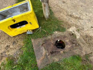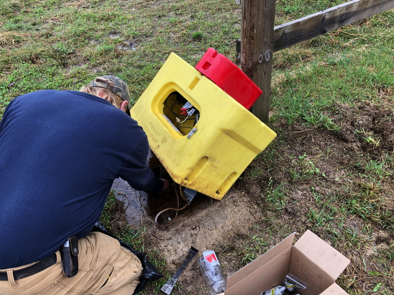 The Ritchie waterer needed to be disconnected and removed, and water pumped from the hole in order to confirm the cracked valve and replace it.
