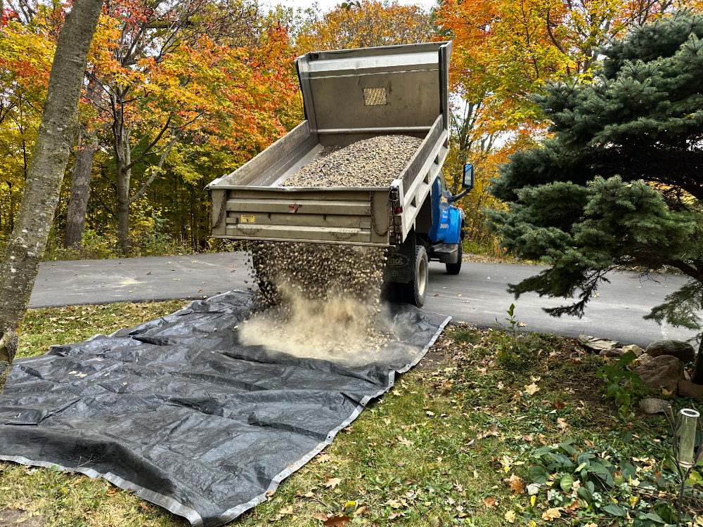 We started our landscape project in the spring and it has dragged on for months. It is very satisfying to finally have the rocks delivered which puts the completion of this project entirely in our control.