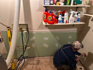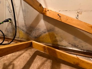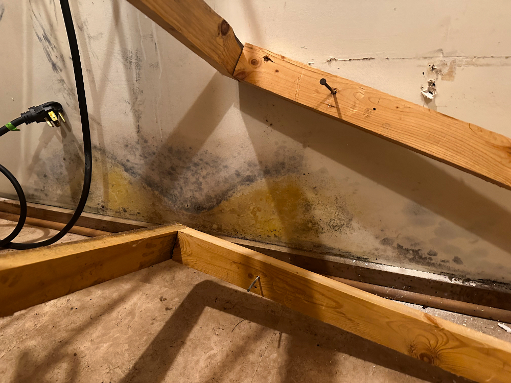 Old seals on the hoses to the washing machine in the laundry room leaked when nobody was aware of it, and the resulting water damage included moldy sheetrock.