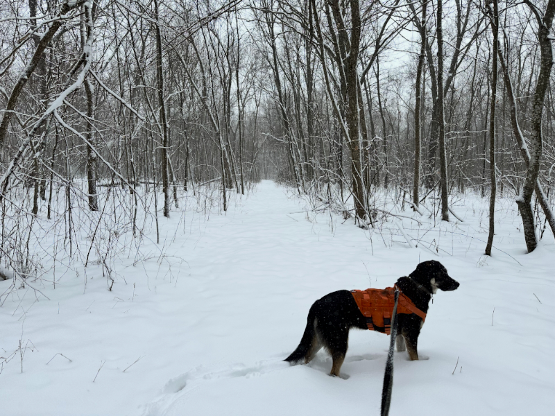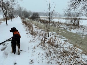 Now on top of the inch or two of standing water that was covered by about 7 inches of saturated snow, we were receiving oodles of new, dryer snow. It made for some really laborious trudging while accompanying Asher on one of his daily rounds.