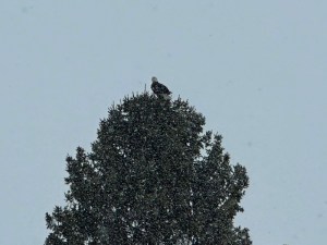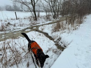 If there was a carcass the beautiful bird had been involved with, I didn’t want Asher to find it so we trudged onward to finish the property border walk and get back to the safe confines of the house. The conditions outside were teetering uncomfortably close to the category of being unfit for man or beast.