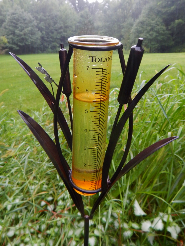 It was now raining hard again at that point, and I was about as wet as could be. I was tired, saddened, and feeling entirely defeated. Dragging my sorry soaked self up toward the house, I checked the rain gauge again to see that an additional inch had fallen while I was out.