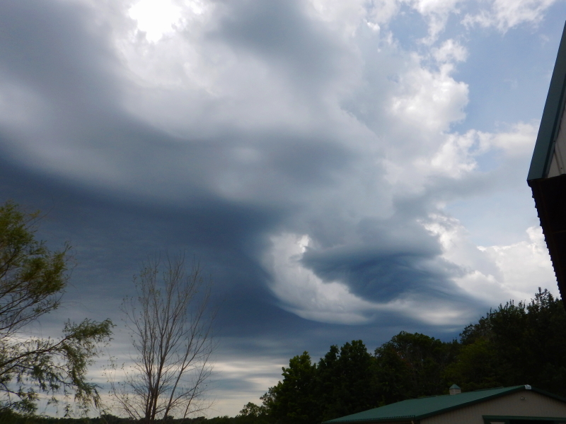 Under a strange sky on a day when rain wasn’t predicted, Cyndie and I planned to work on improving the landscape around the round pen to stop the sand from getting carried away in runoff every time it storms.