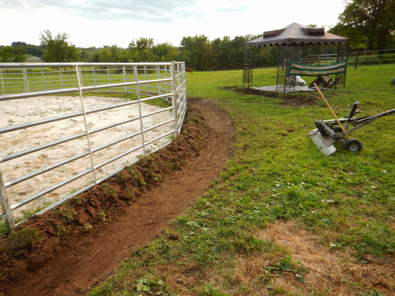Obviously, this is effort that would have best been done before we brought in the sand, but we were in a hurry to get the footing in the round pen improved in time for the training sessions that had been planned.