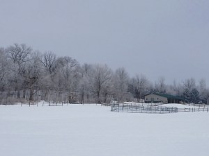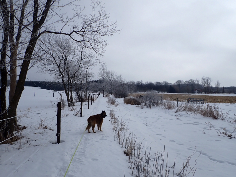 The sky looked completely different yesterday, after the outstanding blue we enjoyed Friday. In the classic weather paradox of the north, even though it was cloudier, the temperature was warmer than the day before. The brain-freeze didn’t happen on Delilah’s and my morning walk around the property yesterday.