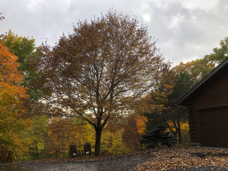 One day you wake up and notice the dominant shade out the window is yellow-brown. Honestly, it seems like it happens overnight. Tuesday, the trees were ablaze with vibrant hues of red and orange with green and yellow highlights backed by a blue sky to set them all off magnificently.