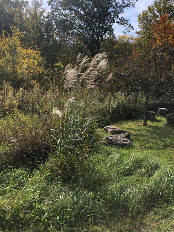 The other day when I was out harvesting rocks, I stopped to soak up the beautiful spectacle of some of the successfully transplanted ornamental Japanese Silver Grass we replanted near the labyrinth.
