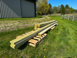 Leaving all the extra lengths is just a precautionary decision in case we decide we want to make adjustments to the geometry for any reason. We are leaving the temporary supports in place to allow time for all the earth we dug up to settle around each post.