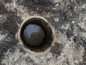 At first, the holes appeared to be dry at the bottom, but we soon saw water flowing into them. More evidence to Cyndie and me that either the water table is pretty high here or we have a natural spring in the vicinity, about 3 or 4 feet below the surface.