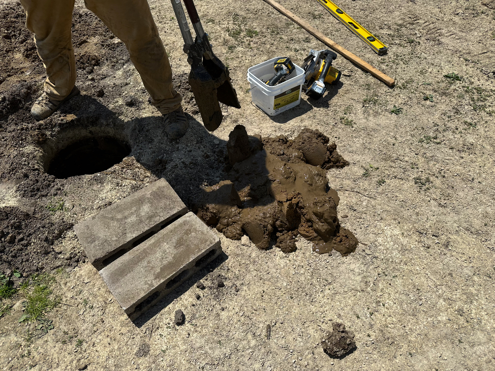 We even tried a sump pump to remove standing water, just long enough to establish a base of concrete blocks and gravel fill. Pumping was only moderately successful.