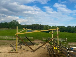 As soon as we removed the temporary lower support boards, I took down the barrier to allow the horses full access to the small paddock. They were way more interested in the grass that had been untouched for a couple of weeks than the strange canopy overhead.