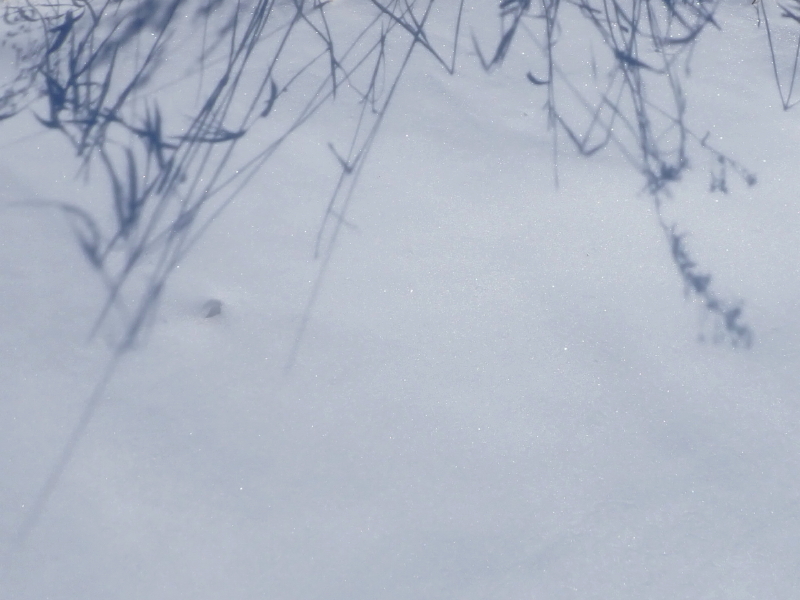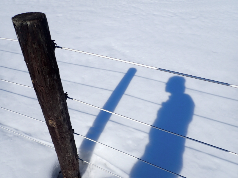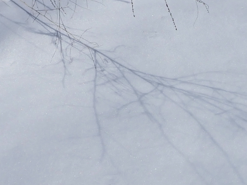 It could be that she got enough of a workout from the deep snow to appreciate the number of times I asked her to pause and wait while I took some pictures. There were fabulous shadows on display that I found particularly captivating, despite my being unable to successfully record most of them.