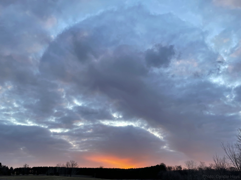 Cyndie was on her way home from the Cities, and called to ask if I had seen the waves of clouds in the sky. She stopped and took pictures, which looked a lot like mine.