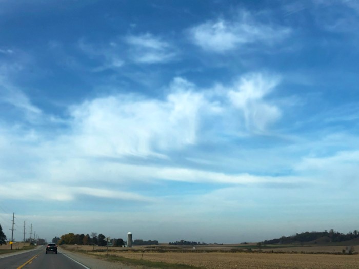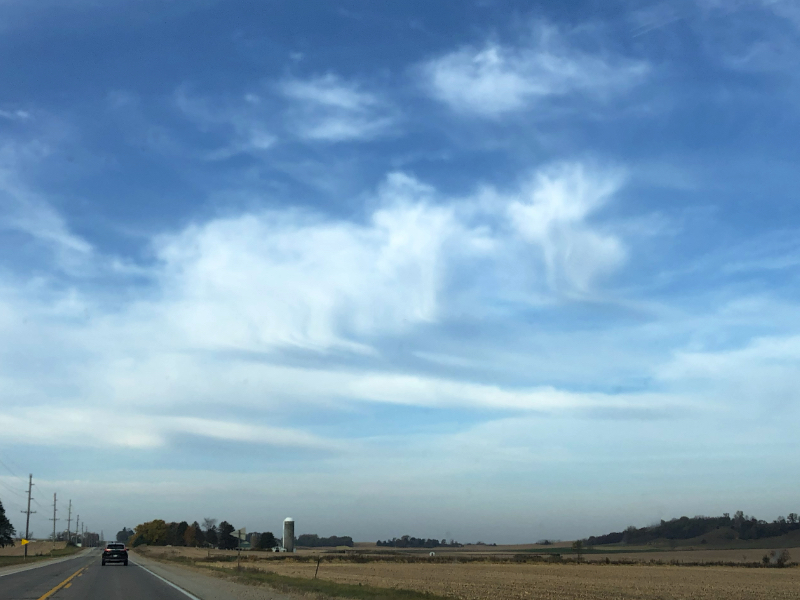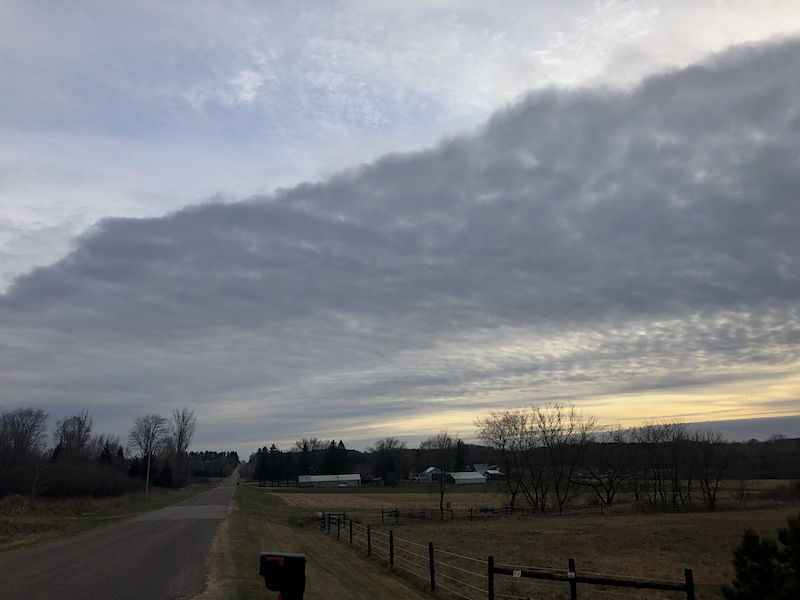 Driving to the Minnesota side of the St. Croix river from our house, I witnessed a phenomenon in the sky that was a first for me. High winds had pushed some clouds 90° from flat to straight up. On an otherwise unremarkable-weather morning, such an anomaly in the sky seemed incredibly remarkable to me.