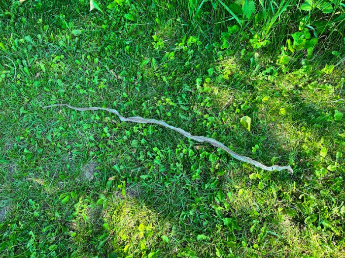 The sight of a 3-foot-long snake skin on the mowed path around the back pasture brings me no joy. If skin that long didn’t fit anymore, I don’t want to know how big it is now.