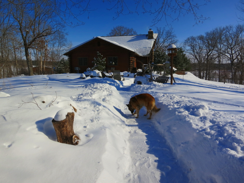 It took me until yesterday to finally finish clearing all the new accumulation that fell last Thursday. I had tried making my way out to the wood shed for a load of firewood and in one trip exhausted all my energy by trying to forge my way through the deep snow. I realized this passageway should be added to the queue of areas needing to be cleared after every snowfall. It is no longer sufficient to just trod the route to create a path.
