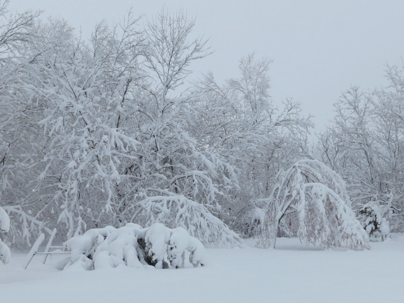 This is one for the record books, I tell ya. I’m a big fan of winter, but this one may have exceeded my capacity to cope. We went for a little walk late last night to check out the drama, and I couldn’t really enjoy it. It looked too much like last May when we received 18 inches of snow overnight and suffered a huge amount of damage to our trees.