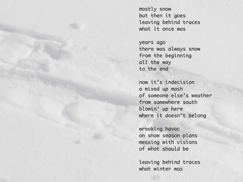 Rain in winter is proving to be our new normal in the region of Minnesota and Wisconsin where I grew up. All we can do is react to the conditions presented, but it’s an unfamiliar winter landscape to me to have water raining down onto our snowscape. It’s such a mess.