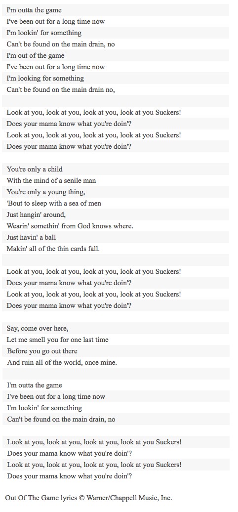 Check it out. “Look at you, look at you, look at you Suckers!” What a fun chorus to listen to. Infectious. It works because of the way he sings, “Suckers.” You don’t immediately recognize it for that. It’s my earworm for today.