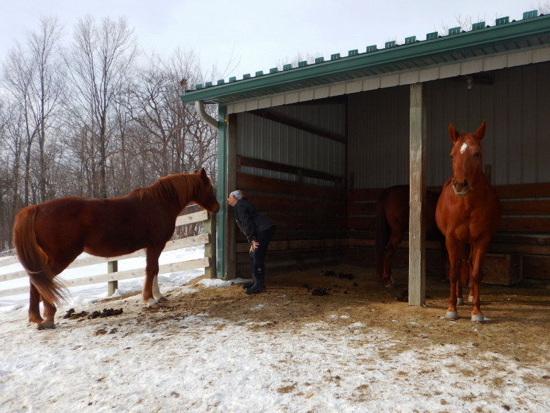 After Cyndie and I walked Delilah around the property yesterday afternoon, we all ventured to the barn to look in on the horses.