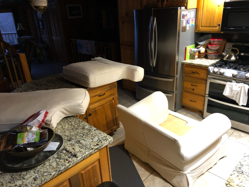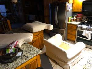 Yesterday was a day of furniture upheaval in our house, demonstrated first thing in the morning by the sight of the overstuffed chair that used to be in the loft suddenly occupying the floor of our kitchen.