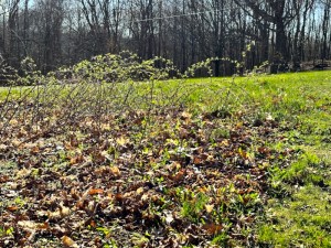 We’ve survived a few days when the morning temperature teetered around the freezing point with no noticeable damage to new growth sprouting everywhere we look. One of the early above-ground wild plants to show signs of leaves is the black raspberry bushes.