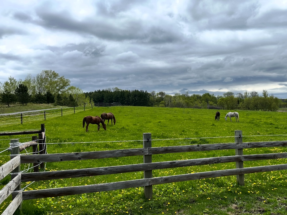 In April, three years ago, the four thoroughbred mares arrived at Wintervale. At the time, we didn’t know if they would stay any longer than the summer grazing season. The fact that we are transitioning them onto green grass again for the fourth year makes it pretty clear we settled into keeping them here year-round. At this point, I dream of them never needing to ride in a trailer again.
