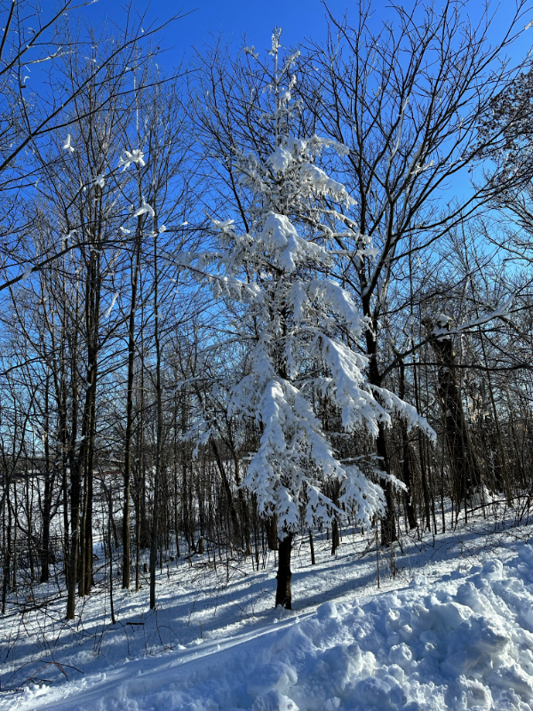 Only the largest mounds of piled snow from plowing or shoveling remain. Remember that dead pine tree that collected and held onto the last big snowfall we received?