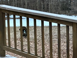 I watched him slowly parading toward the house until he turned and wandered into the trees. I figured he was gone but soon spotted him through the den window on the other side of the house.