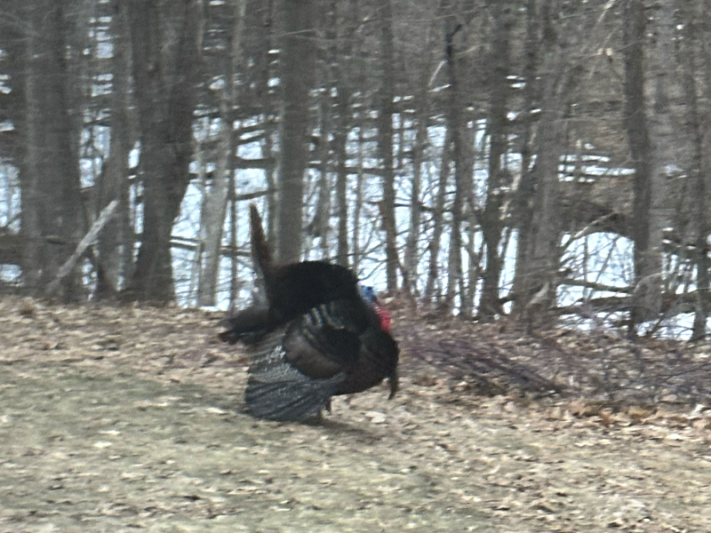 There was a tom turkey in the vicinity. Reminded me a bit of the good old days when our rooster, Rocky, would announce the impending arrival of daylight.