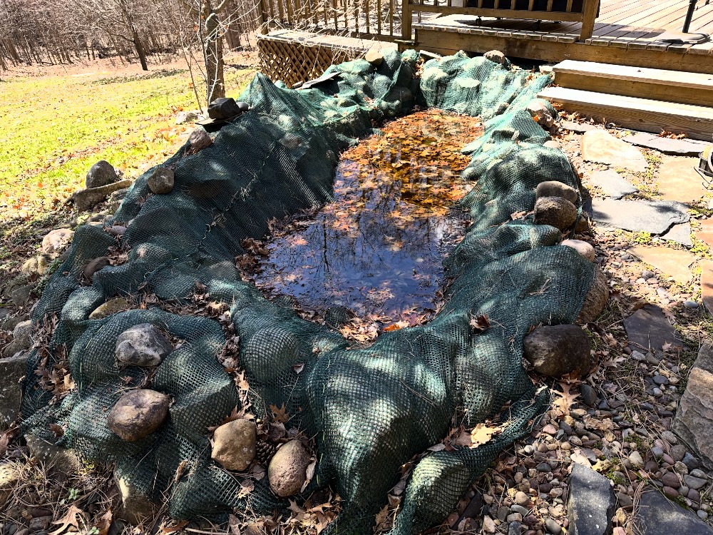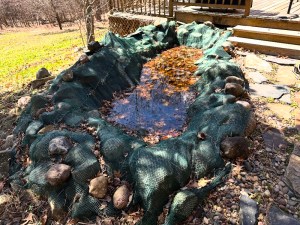 Yesterday, we pulled back the winter netting that collected fallen leaves over the last six months.