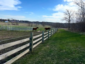 They barely walked beyond the wood fence to begin feasting on fresh chomps of grass. Nothing wrong with that, but we always compare it to the time they took off running like the racehorses they once were upon that first opportunity on the field in spring.