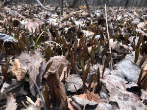 The forest floor is about to burst forth with trout lilies along our paths.