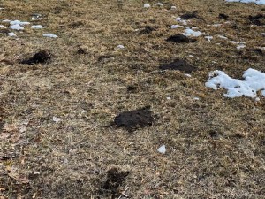 With so much real estate available for the critters to thrive, we willed the marauders to move on to open fields by stomping their tunnels and mounds in our yard last year, but as the snow receded and the topsoil begins to thaw, the evidence appears as if their numbers have tripled.