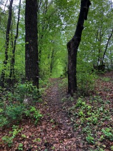 Despite all the sprouting greenery, there is more moisture in the soil lately than the growing trees and plants can absorb. That is making our trails rather treacherous. It is very advantageous to have our custom boardwalk for a short span in the middle of the woods.