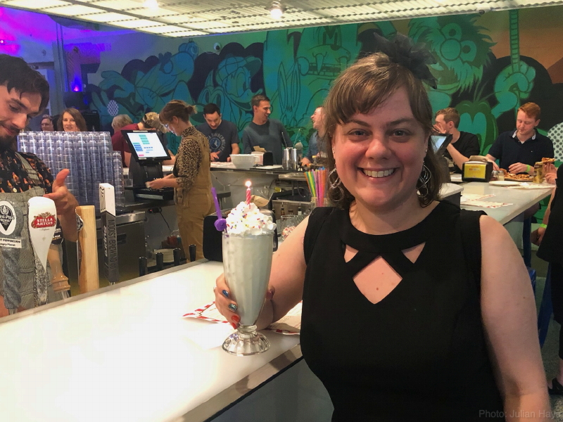 We chose to pass on the two-hour wait for the artist-designed mini-golf and settled for old-style pinball from my days of youth, skee-ball, ping pong, and bubble hockey, topped off with a round of beverages. A perfect birthday extravaganza.