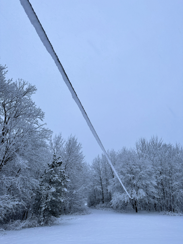 Light snow fell on and off for most of the day and the thermometer revealed a 39° (F) reading as the high. It made for some sticky-snow plowing. On the drive home, anywhere that had been plowed had pretty much melted clear of snow and the roads were just wet. Our driveway had a thick accumulation covering it.