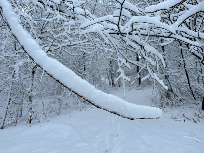 The stickiness was creating some interesting viewing. One little branch could hold a surprising amount of snow.