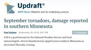 Meanwhile, the warnings I was getting for Beldenville had me regularly monitoring the radar down there and though some instances looked pretty intense, it never appeared to zero in on our property. Reviewing news headlines before turning in for the night revealed stories of serious damage in Hudson with a building losing its roof, many large trees toppled, and thousands who had lost power.