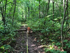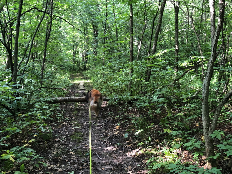 I offered a greeting as I passed and we continued on our way. I found it humorous that further along our walk along that perimeter trail, Delilah showed signs she smelled something of interest in the middle of our forest. Her behavior conveyed, “Hey! There are deer in there! Can I go see them?”