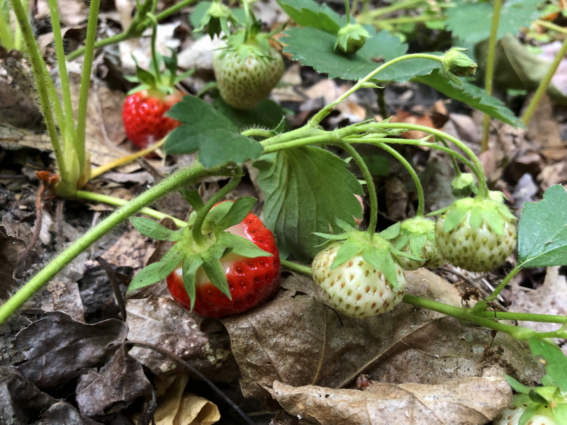 We also noticed quite a sizable patch of wild strawberries growing in our pasture. I’m told they don’t bear large fruit, and won’t be as sweet as the cultivated ones that are sold in stores. We’d love to add them to our bounty, but I suspect it will be hard to beat the wild critters roaming the grounds, to getting them.