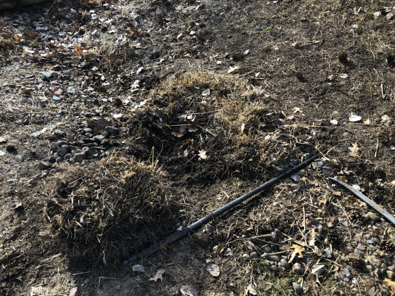 Back home for the afternoon, we successfully dug out two portions of the main mass of tall grass and transplanted them to two different spots on our property. I had anticipated the separation to be much more of a struggle than we ultimately experienced. We will be thrilled if the transplanted pieces survive and thrive in their new locations.