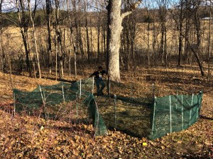 Toward the end, I noticed a squirrel had taken quite a liking to being inside the netted perimeter fence. Every time I walked by, the intruder would startle and panic, botching several times in his attempt to climb out before succeeding.