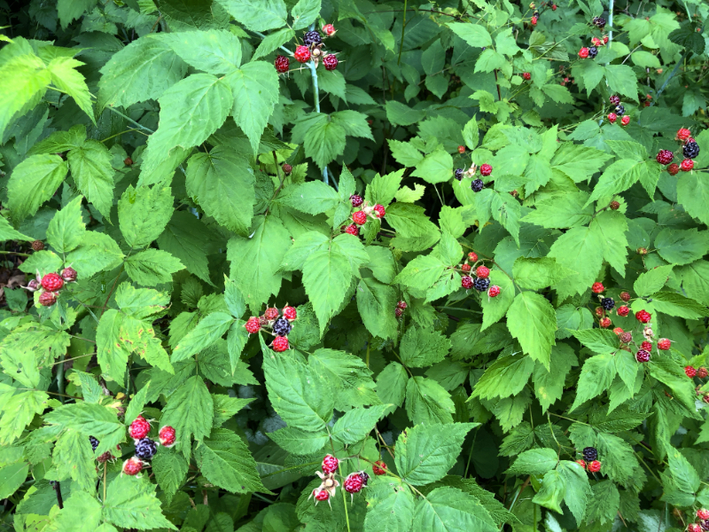 With the black raspberries now ripening everywhere we turn, it would be wise to always bring a pale along on our daily dog-walking excursions. Berry picking can spontaneously occur at any time when the berries all ripen at once.