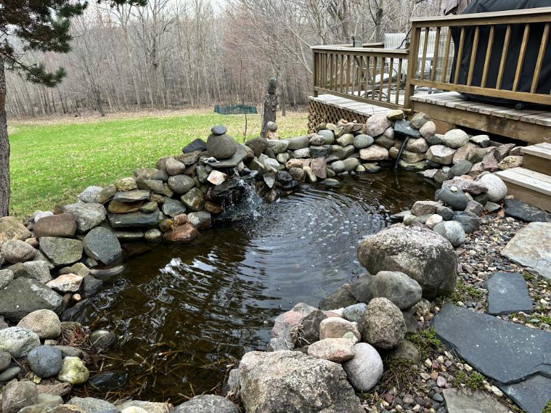 We wrapped up the patch after we finished installing the water pump in our landscape pond beside the back deck.