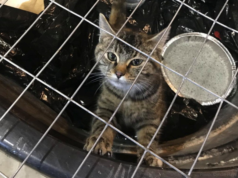 We decided to put her in the shop overnight, since it is heated. I had a tub and some cat litter stashed in there, so we set that up for her. Since Cyndie had posted on the Nextdoor app about this stray, she went back and left a note for one person who indicated interest if nobody else claimed the cat.