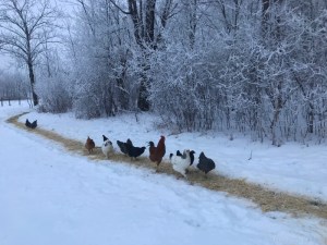 We’ve figured out a way to help the chickens cope with snow. The wimps.