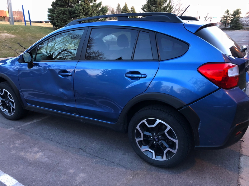 Tagged with auto body repair, body work, commuting, Crosstrek, deer, deer impact, hitting a deer, Subaru