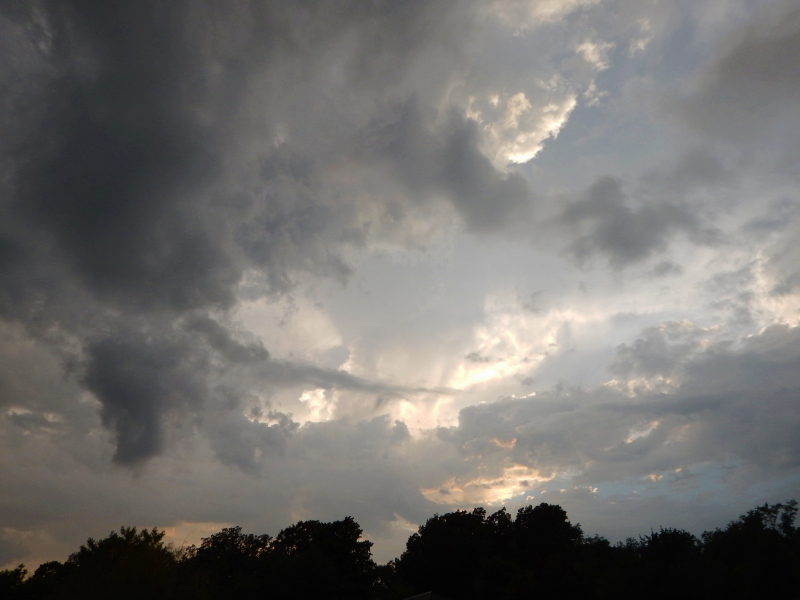 By evening, the predicted evening thunderstorms sporadically popped up around us, and occasionally, right overhead. In between a couple, I went for a walk with Delilah and enjoyed the spectacular sky views. It was a Sunday of making custom musical playlists, computer work, lollygagging, comfort foods, and judiciously distributed forays into the thick, hot air of outdoors. That’s about as close to a day off as I needed.
