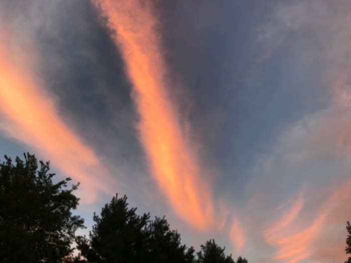 I am so lucky that Cyndie offers me pictures she took and allows me to post them here. She created some wonderful art out of two very different sky views on Wednesday night. I’m jealous. Her percentages for photographic success are much higher than mine lately.